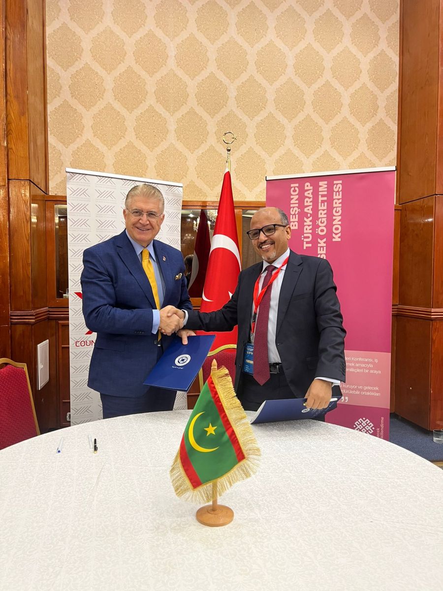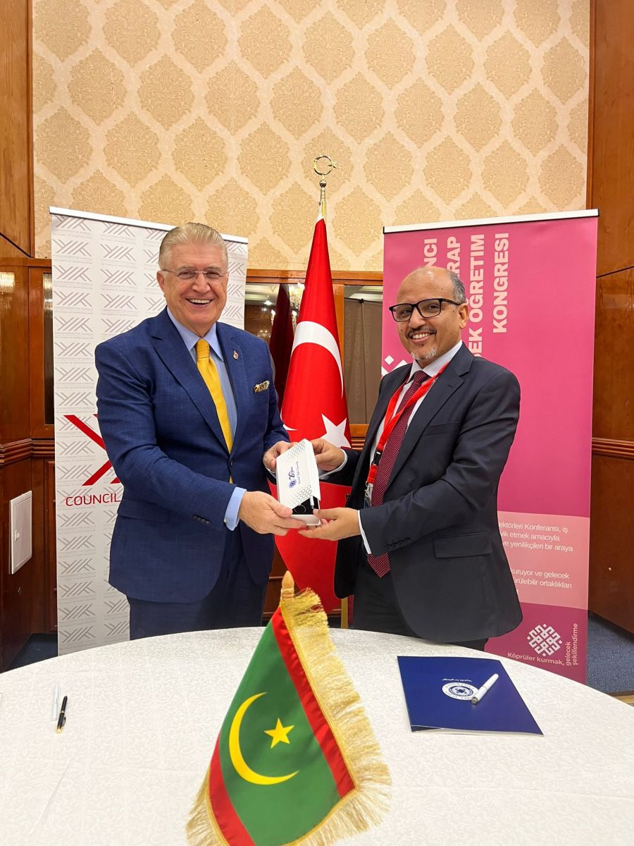 وقد مثّل الجامعة في هذا الملتقى لبرفيسور/ محمدو لمرابط اجيد، رئيس الجامعة، الذي أجرى على هامش المؤتمر لقاءات علمية مثمرة مع عدد من الشخصيات الأكاديمية البارزة، من بينهم معالي رئيس مجلس التعليم العالي التركي، أ.د. إيرول أوزفار (Erol Özvar)، ورئيس جامعة إسطنبول آيدن، لبروفيسور/ مصطفى آيدن.